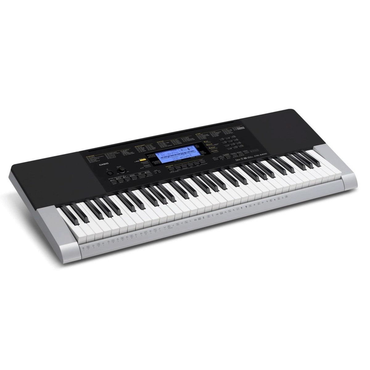 Đàn Organ Casio CTK-4400 là lựa chọn lý tưởng cho người mới bắt đầu và học viên âm nhạc, nổi bật với bàn phím 61 phím kiểu piano, cảm ứng lực nhấn 2 mức linh hoạt cùng nguồn âm thanh AHL chất lượng cao, mang lại âm sắc sống động, chân thực. Thiết kế thân đàn màu bạc-đen hiện đại, màn hình LCD có đèn nền giúp theo dõi dễ dàng.