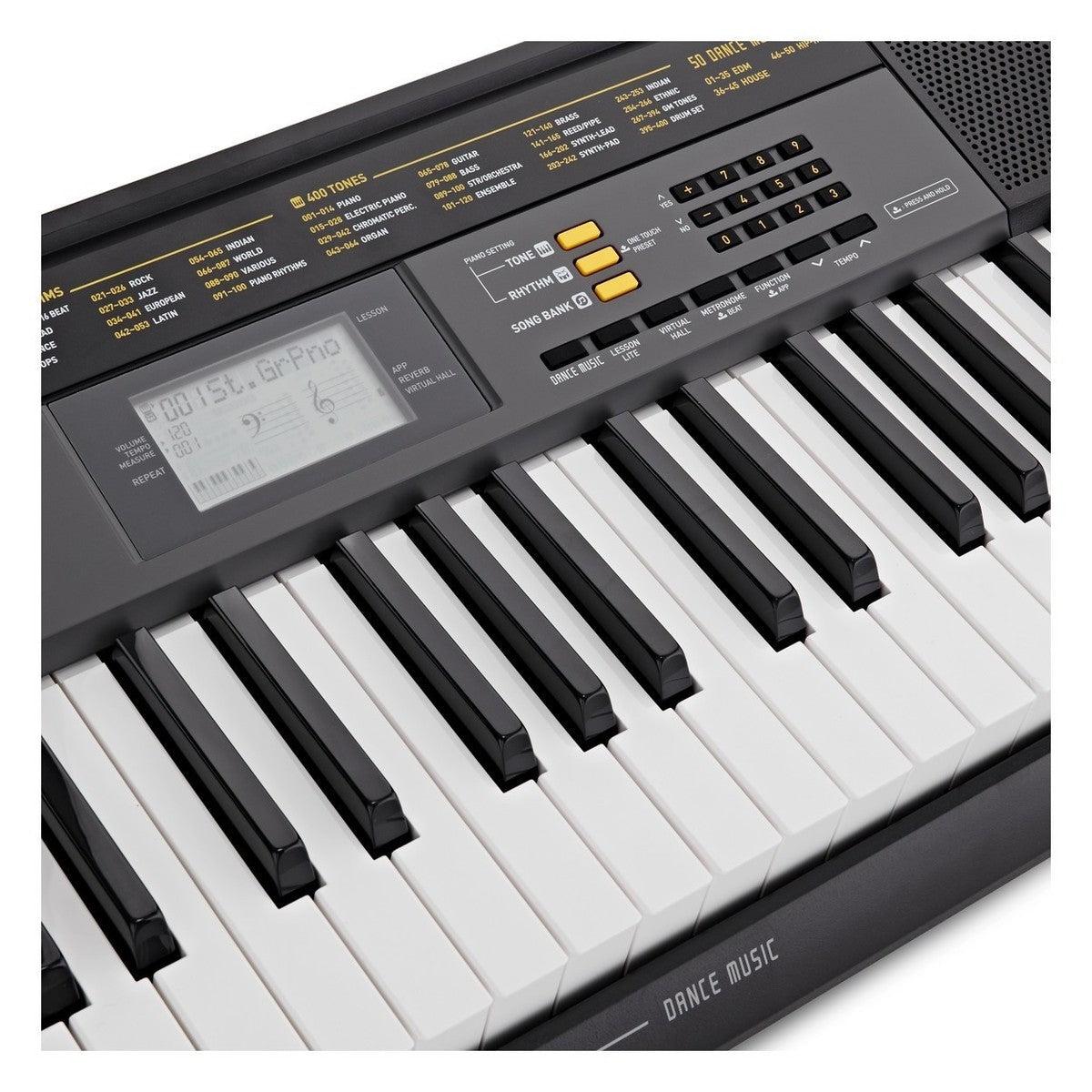 Ngoài ra, Casio CTK-2500 sở hữu bàn phím 61 phím với độ nhạy cảm ứng tương tự đàn piano thật, thể hiện sắc thái âm thanh từ nhẹ đến mạnh rõ rệt. Bộ sưu tập giai điệu đa dạng từ Latinh như Rumba, Cha cha cha, Bossa Nova đến Calypso đem lại trải nghiệm âm nhạc phong phú.