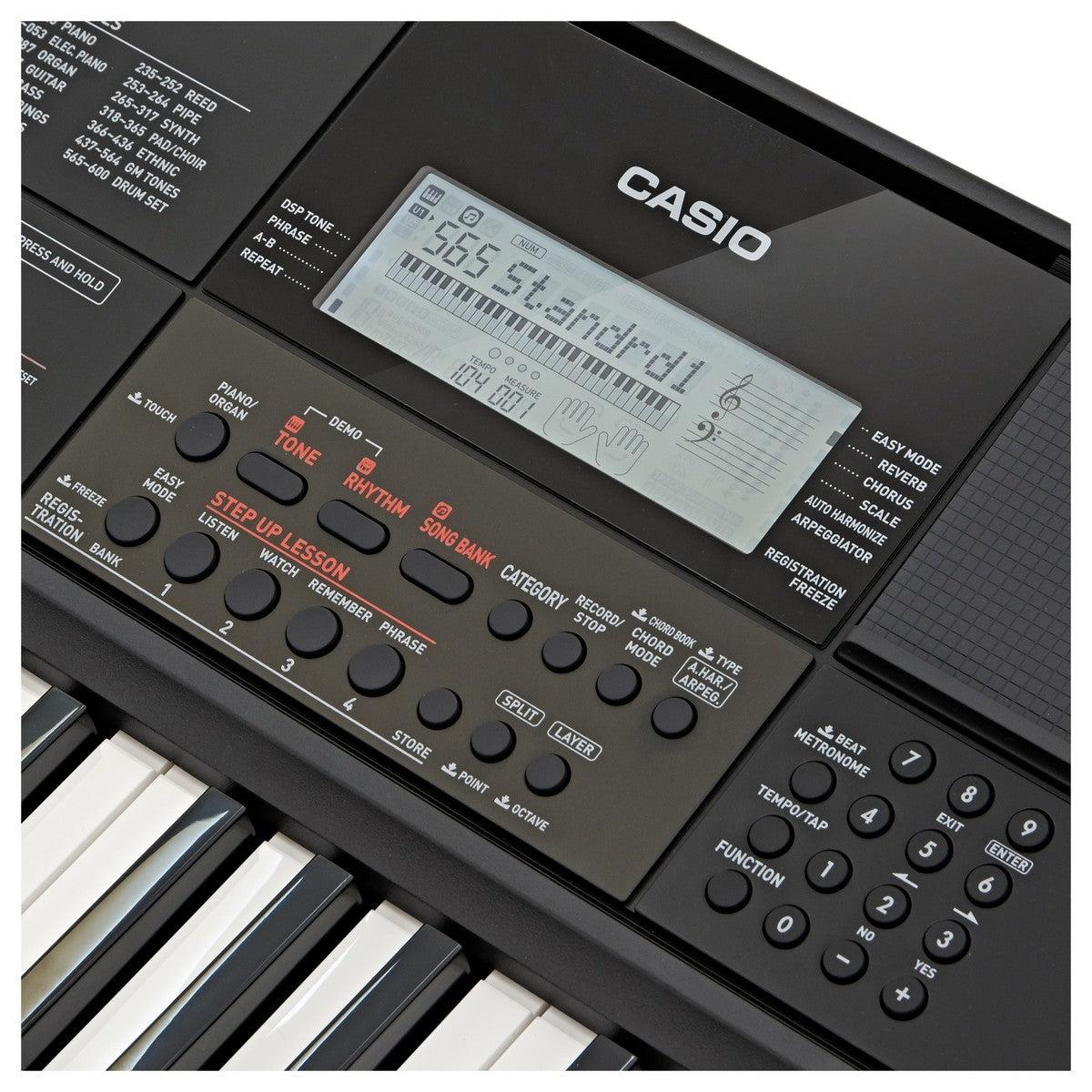 Casio CT-X700 sở hữu 600 âm sắc và 195 nhịp điệu cài sẵn, dễ dàng tùy biến các thiết lập yêu thích. Hệ thống học tập từng bước thông minh với chức năng hướng dẫn bằng giọng nói, chấm điểm chính xác và từ điển hợp âm tích hợp giúp bạn nâng cao kỹ năng nhanh chóng.